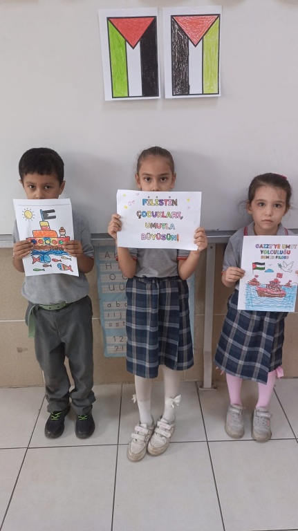 Millî Eğitim Bakanlığı olarak 81 ilimize gönderilen yazı doğrultusunda, bu gün okulumuzda eş zamanlı olarak öğrencilerimizin katılımıyla Filistin ve Gazze temalı farkındalık etkinlikleri düzenledik. Amacımız, çocuklarımıza sadece bilgi kazandırmak değil; vicdanı, adaleti ve insan olmanın sorumluluğunu da öğretmek çünkü insanın içindeki iyilik yeşermedikçe, hiçbir bilgi meyve vermez. Türkiye Yüzyılı Maarif Modeli'nin merkezinde yer alan “erdem-değer-eylem” anlayışıyla barışa, insan haklarına ve evrensel değerlere saygılı bir nesil yetiştirmeye kararlıyız.